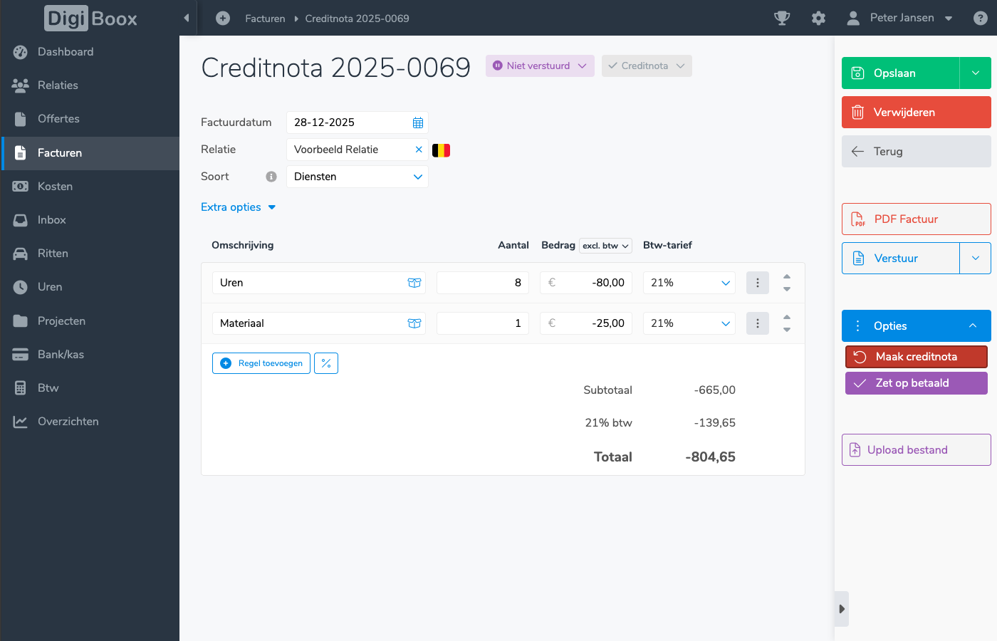 Wanneer je een factuur crediteert, wordt deze automatisch verwerkt in de boekhouding.