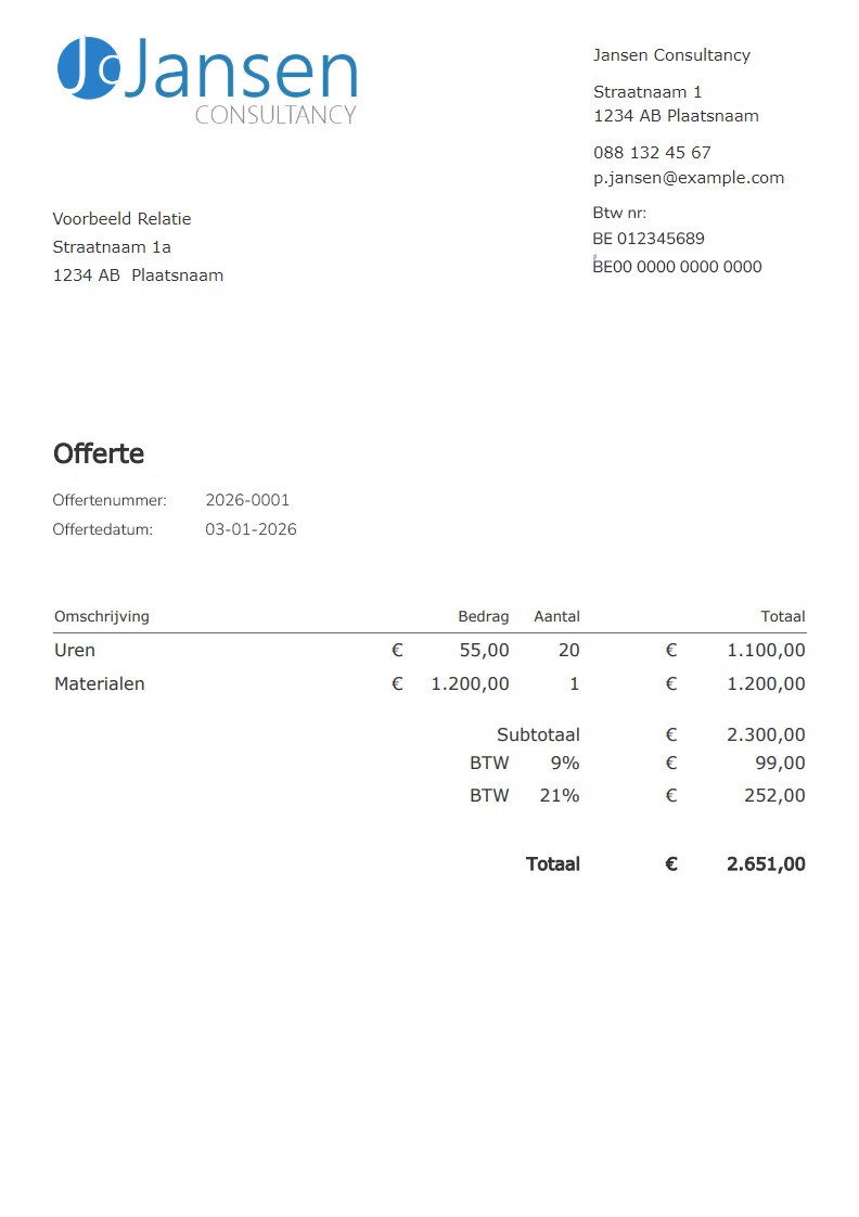 Een offerte kan eenvoudig en snel worden opgemaakt.