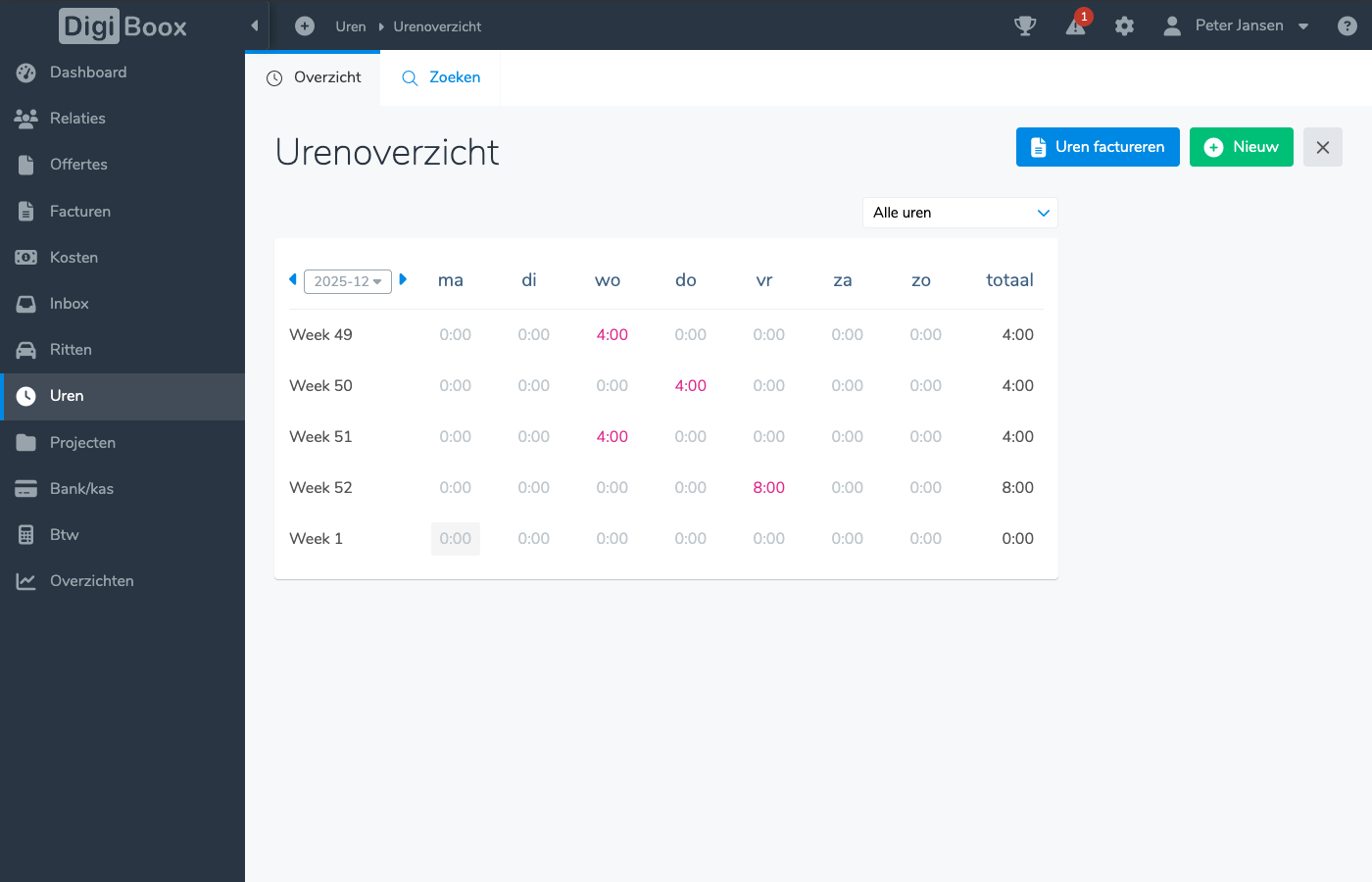 Er zijn diverse overzichten beschikbaar. Ook zijn de uren te exporteren naar Excel-overzichten.
